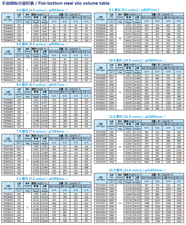 適于儲(chǔ)存糧食、種子、飼料、塑料粒、水泥煤炭及其他顆粒、粉狀物料。用于糧庫(kù)、面粉廠、糧米廠、油脂廠、麥芽廠、啤酒廠、港口、農(nóng)場(chǎng)、糧食處理中心、煤礦等單位,作為基層收納倉(cāng)、暫寸倉(cāng)、中轉(zhuǎn)倉(cāng)、原料倉(cāng)、儲(chǔ)備糧食及其他用途。